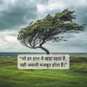 तेज हवाएँ हर पेड़ को हिला देती हैं, लेकिन वही पेड़ टिकता है जिसकी जड़ें गहरी होती हैं। जीवन की कठिन परिस्थितियाँ भी हमारी जड़ों की परीक्षा लेती हैं। अगर आपके विचार मजबूत हैं, आत्मविश्वास गहरा है और मेहनत सच्ची है, तो कोई भी तूफान आपको गिरा नहीं सकता। परिस्थितियाँ बदलती रहेंगी, लेकिन आपका हौसला अडिग रहना चाहिए।
