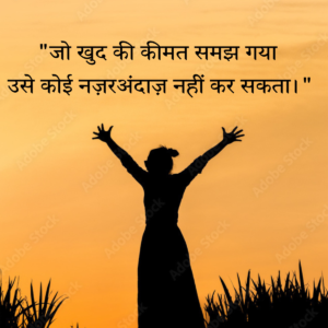 दुनिया आपको उतनी ही अहमियत देती है, जितनी आप खुद को देते हो। जब आप अपने आप पर काम करना शुरू करते हो—अपनी सोच, अपने discipline और अपने goals पर—तब हालात बदलने लगते हैं। लोग तब नोटिस करते हैं जब आप खुद को serious लेने लगते हैं। याद रखो, खुद की क़ीमत समझना घमंड नहीं, बल्कि आत्म-सम्मान है।